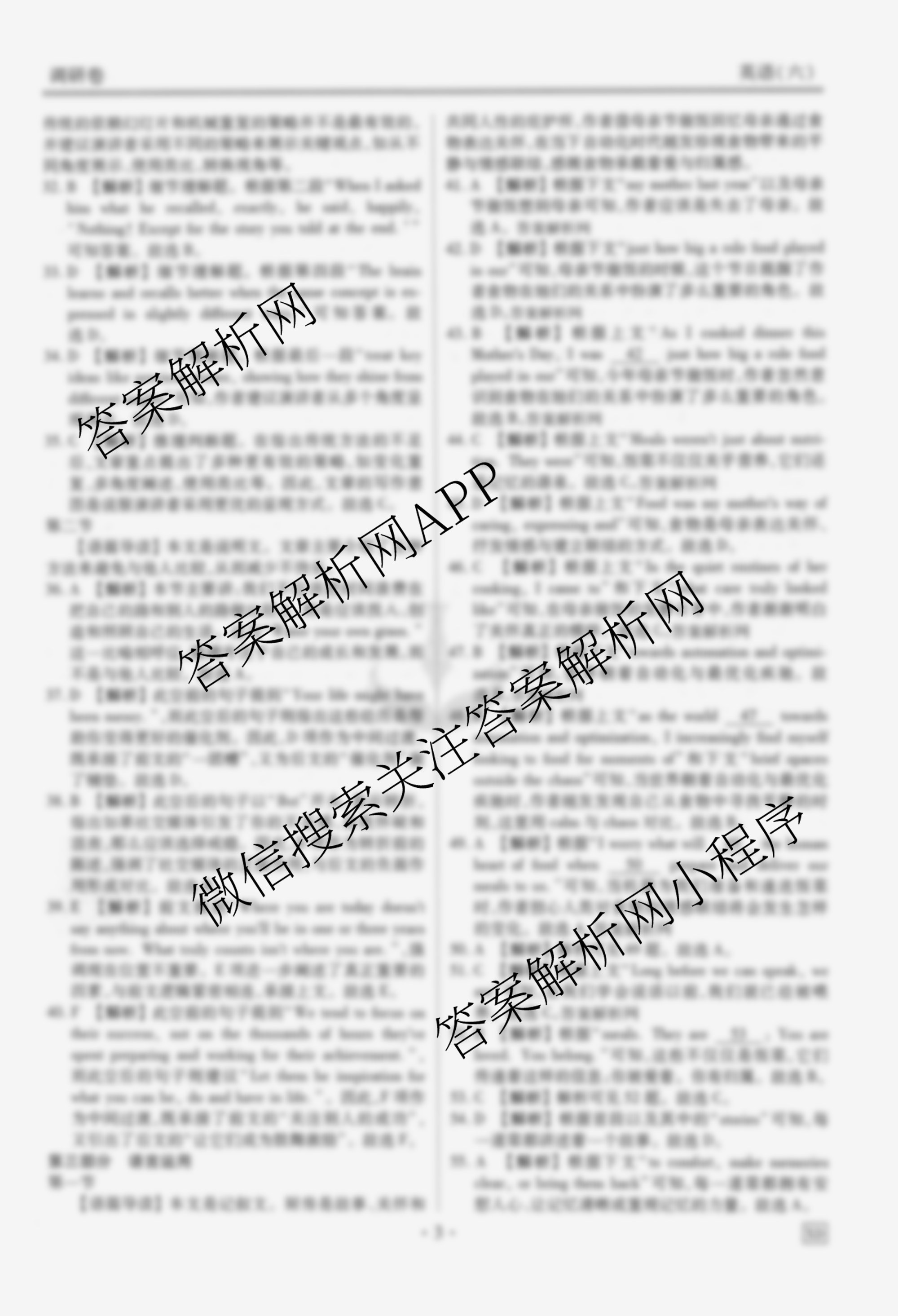 - (高三)(衡水金卷先享题)·调研卷·2026年普通高等学校招生全国统一考试模拟(六)6英语(不含听力)答案