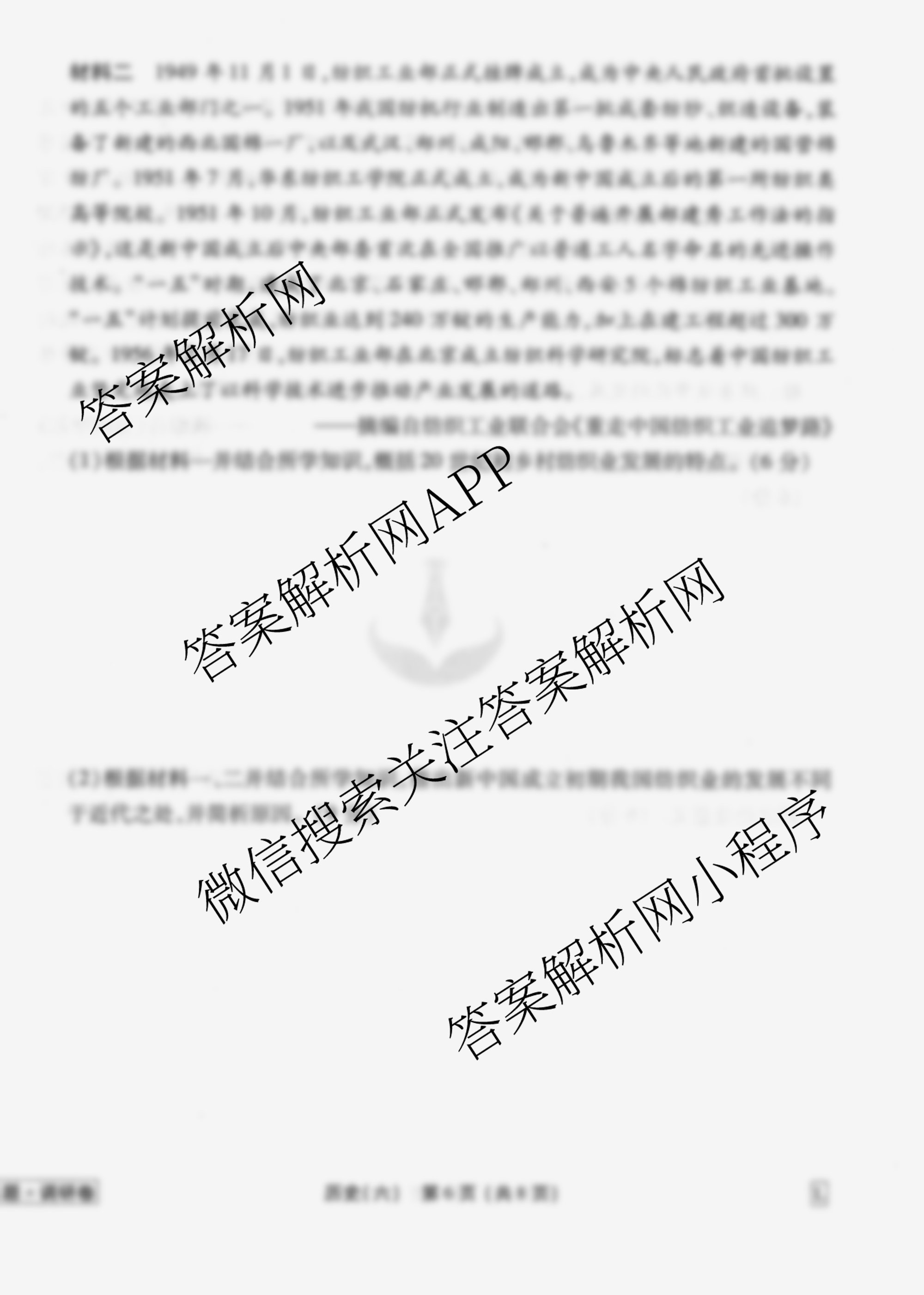 - [衡水金卷先享题]调研卷2026年普通高中学业水平选择性考试模拟试题(六)6历史(HU)答案