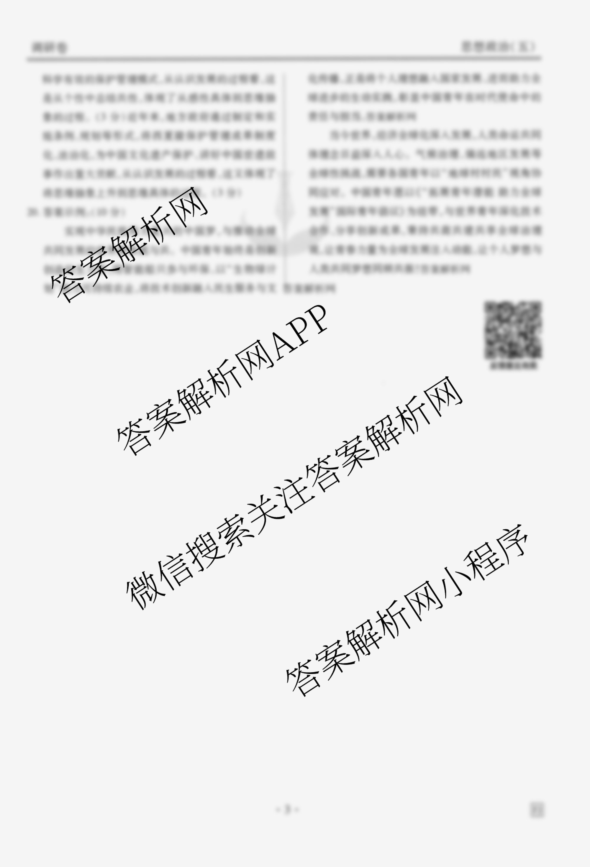 - [高三](衡水金卷先享题)·调研卷·2026年普通高中学业水平选择性考试模拟试题(五)5政治(AH)答案