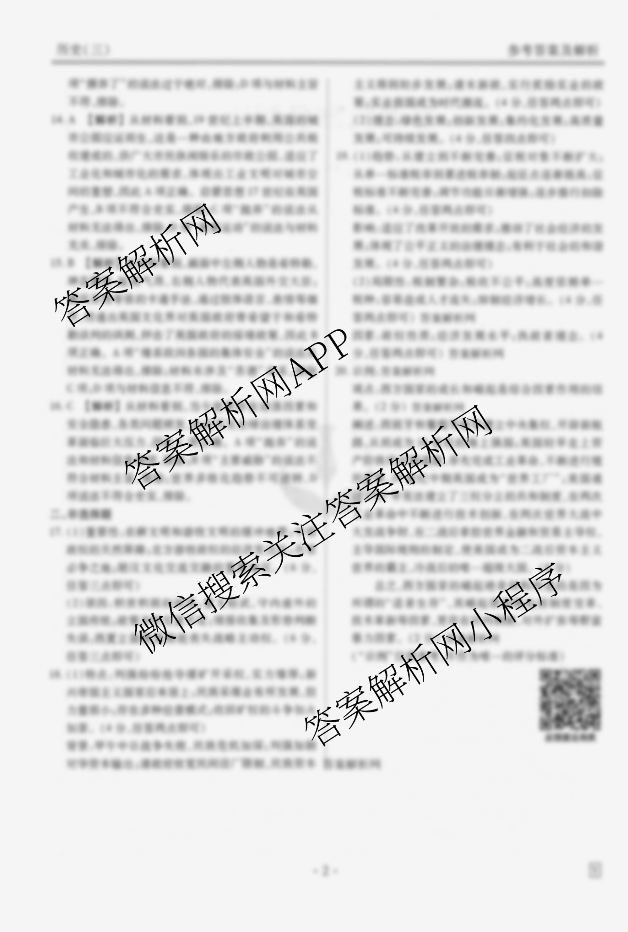 - [衡水金卷先享题]·调研卷·2026年普通高中学业水平选择性考试模拟试题(三)3历史(AH)答案
