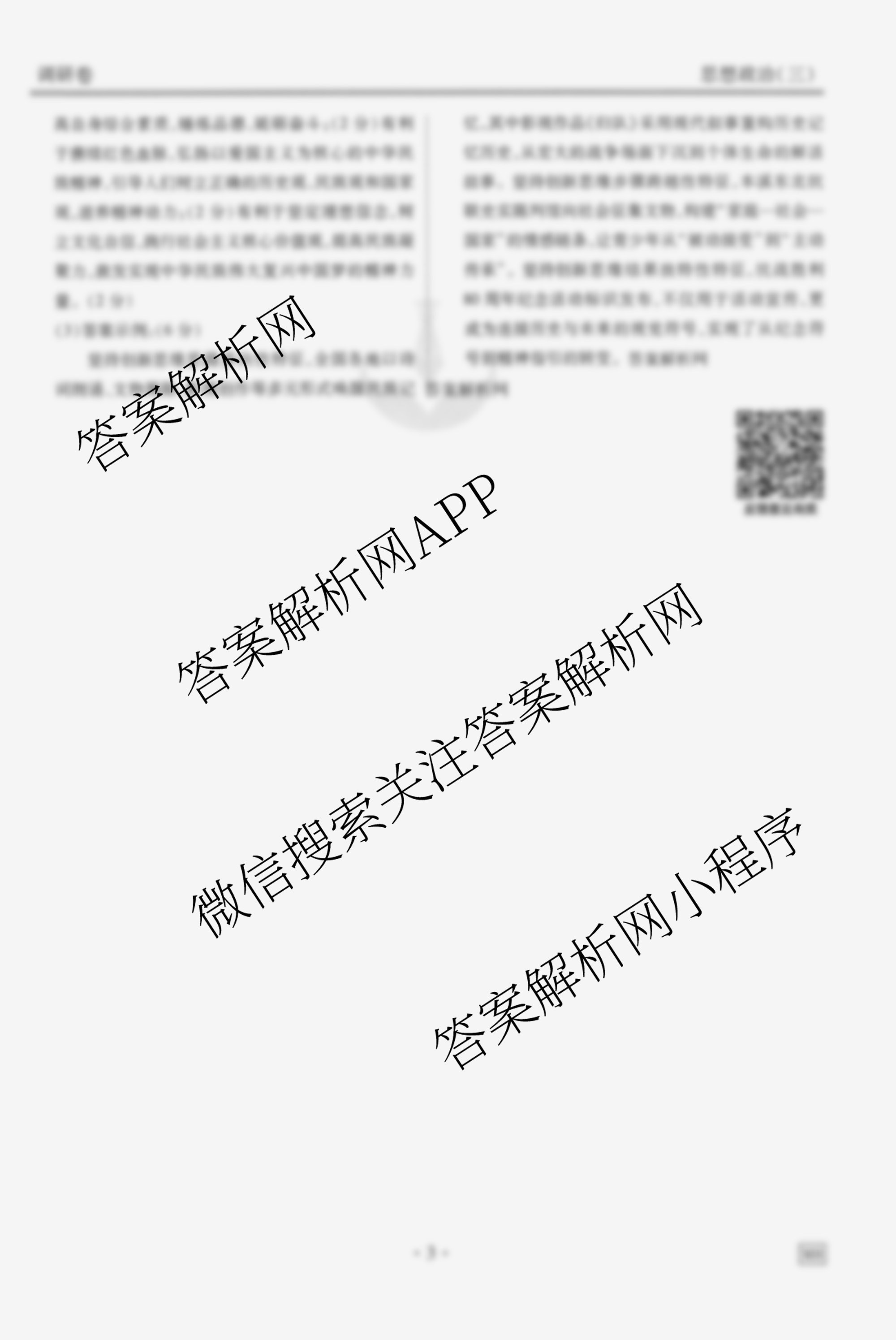 - [衡水金卷先享题]调研卷2026年普通高中学业水平选择性考试模拟试题(三)3政治(AH)答案