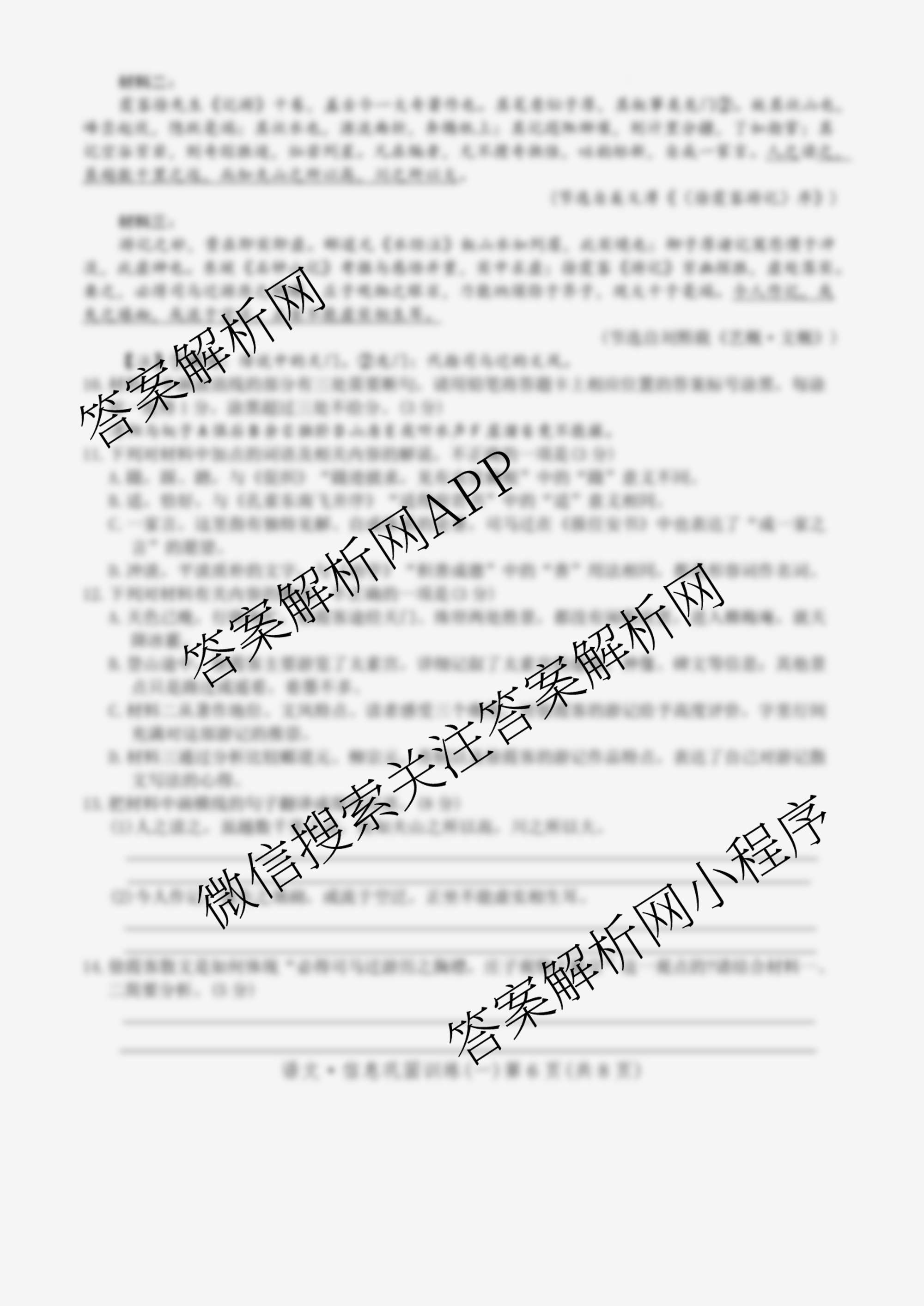 - [高三]2026届高考备考信息巩固训练(一)语文答案