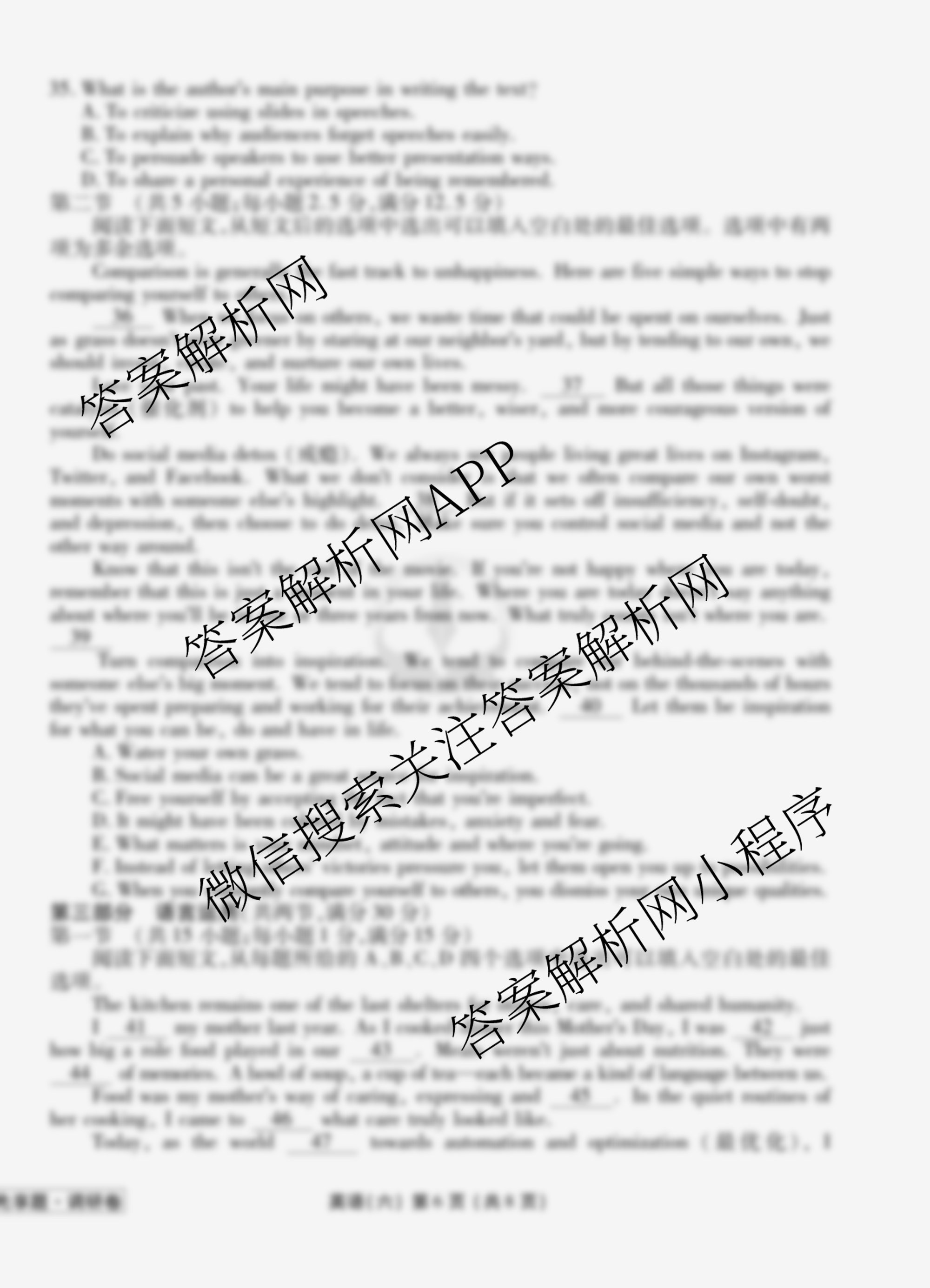 - (高三)(衡水金卷先享题)·调研卷·2026年普通高等学校招生全国统一考试模拟(六)6英语(不含听力)答案