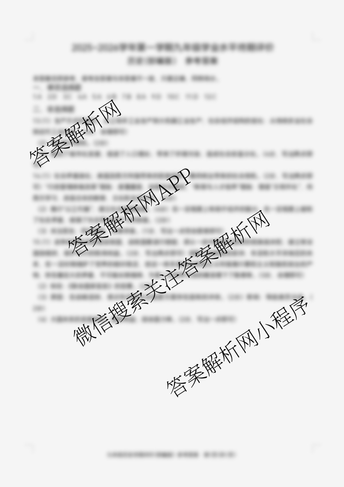 - 2025~2026河北省学年第一学期[九年级]学业水平终期评价历史(部编版)答案