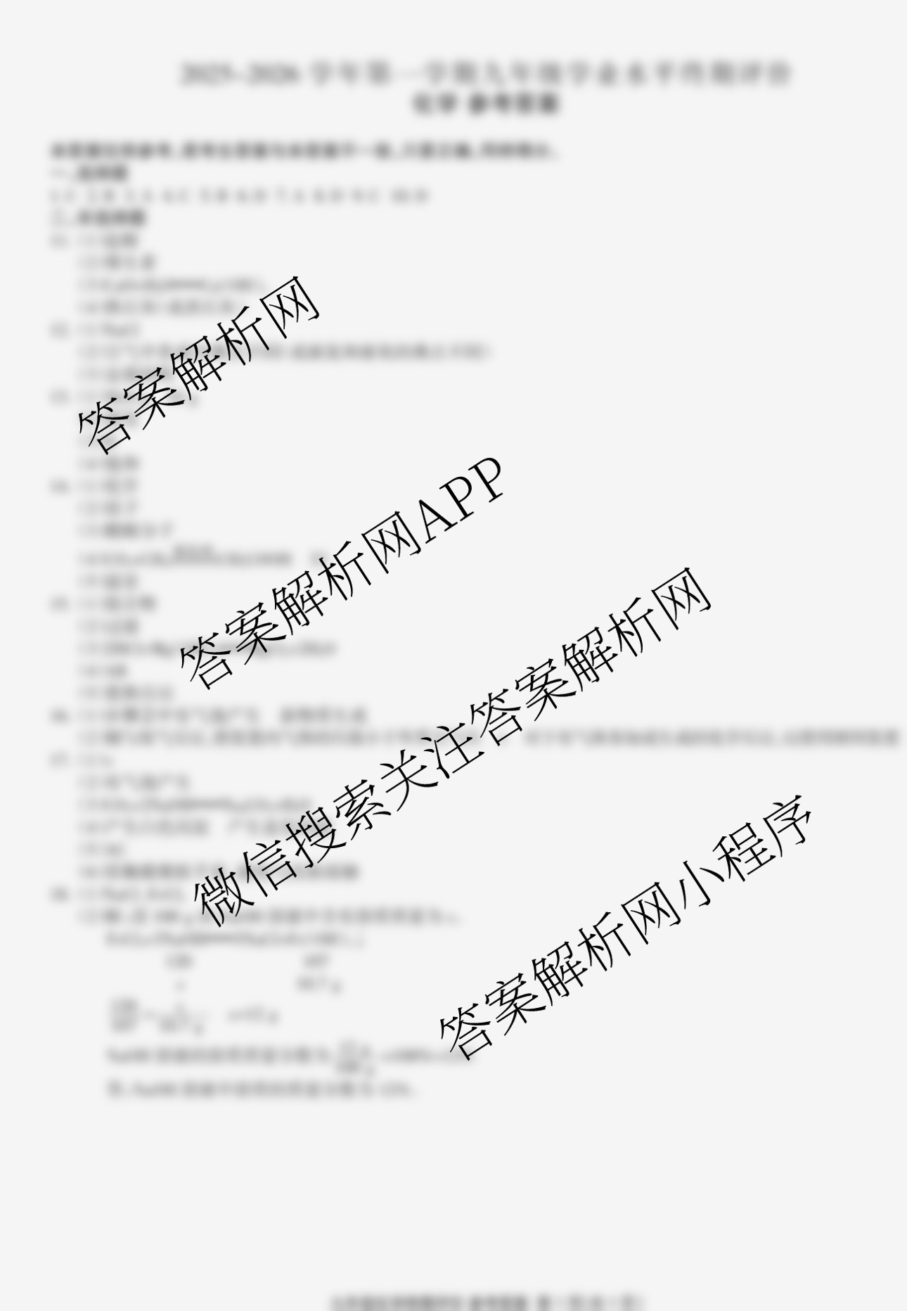 - 2025~2026河北省学年第一学期(九年级)学业水平终期评价化学答案