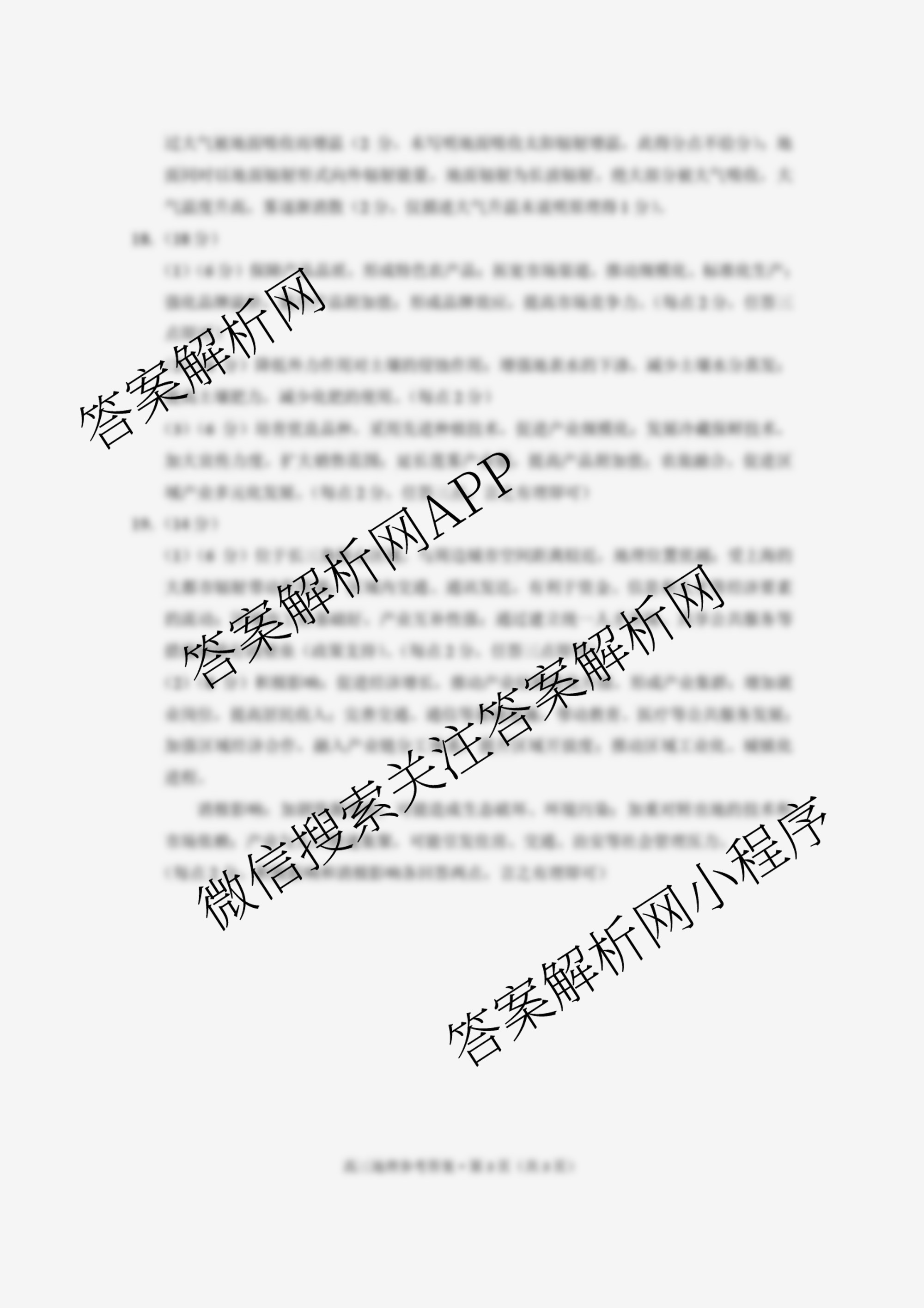 - [高三]云南省昭通市2026届高中毕业生模拟考试地理答案