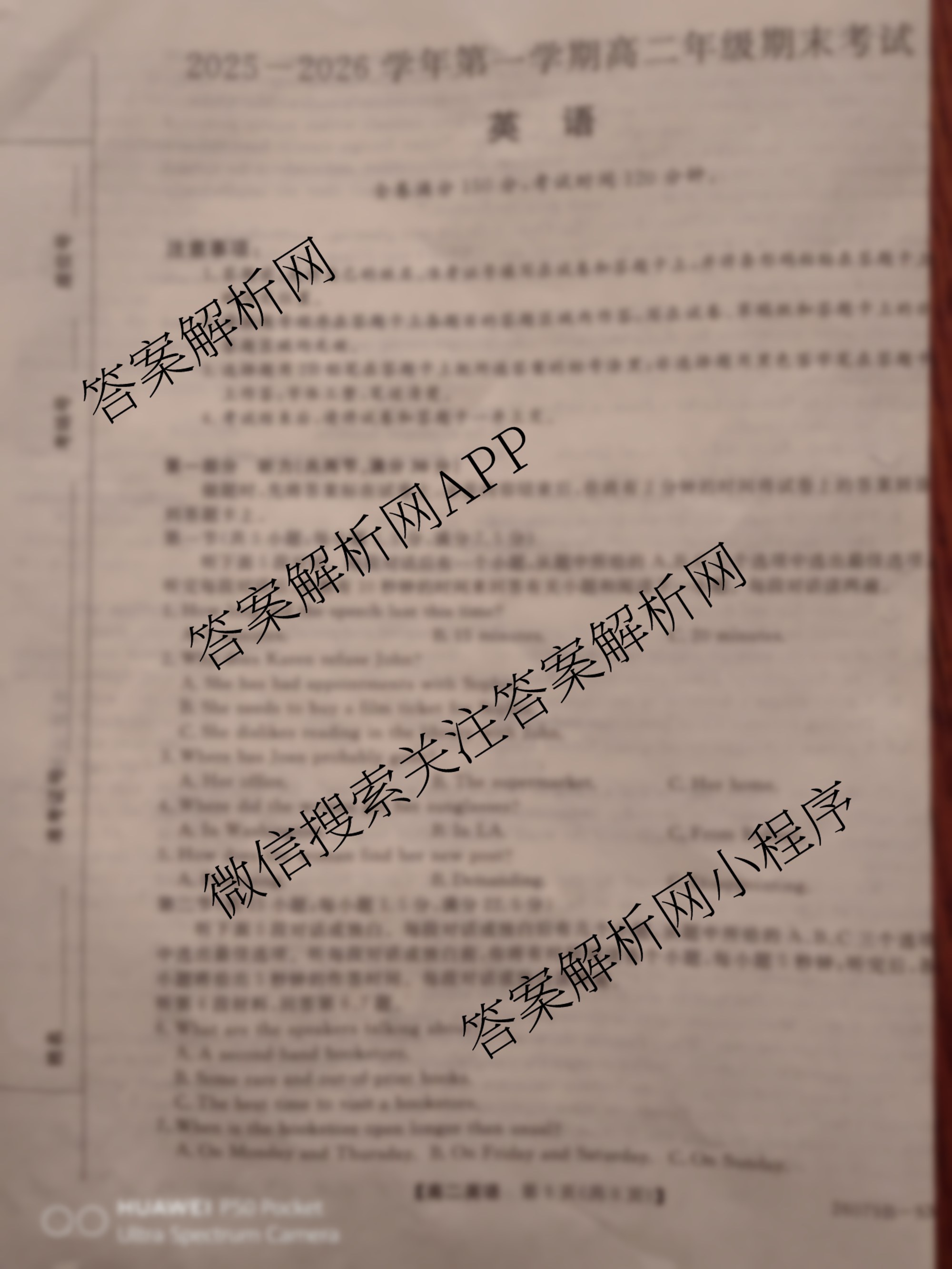 山西省2025-2026学年第一学期高二年级期末考试(26079B-SX)英语试题,目前衡水试卷网已经汇总了山西省2025-2026学年第一学期高二年级期末考试(26079B-SX)英语试题的各科答案和试卷,获取更多地方模拟答案解析,请在关注本站。
