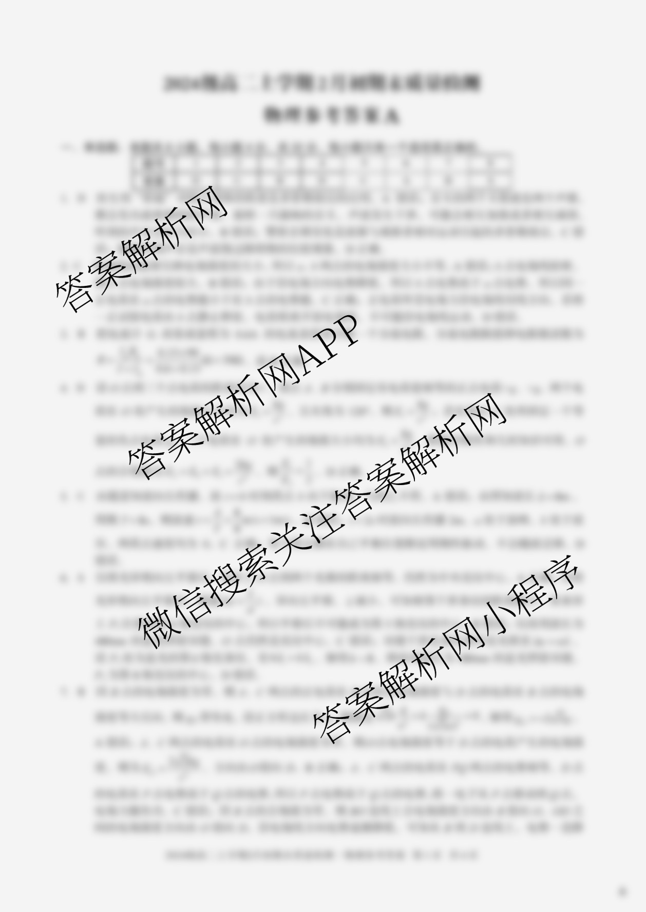 安徽省2024级高二上学期2月初期末质量检测物理(A)答案,目前衡水试卷网已经汇总了安徽省2024级高二上学期2月初期末质量检测物理(A)答案的各科答案和试卷,获取更多地方模拟答案解析,请在关注本站。