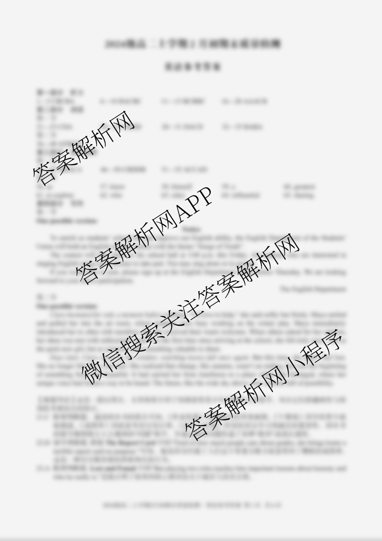 - (高二)安徽省2024级上学期2月初期末质量检测英语答案