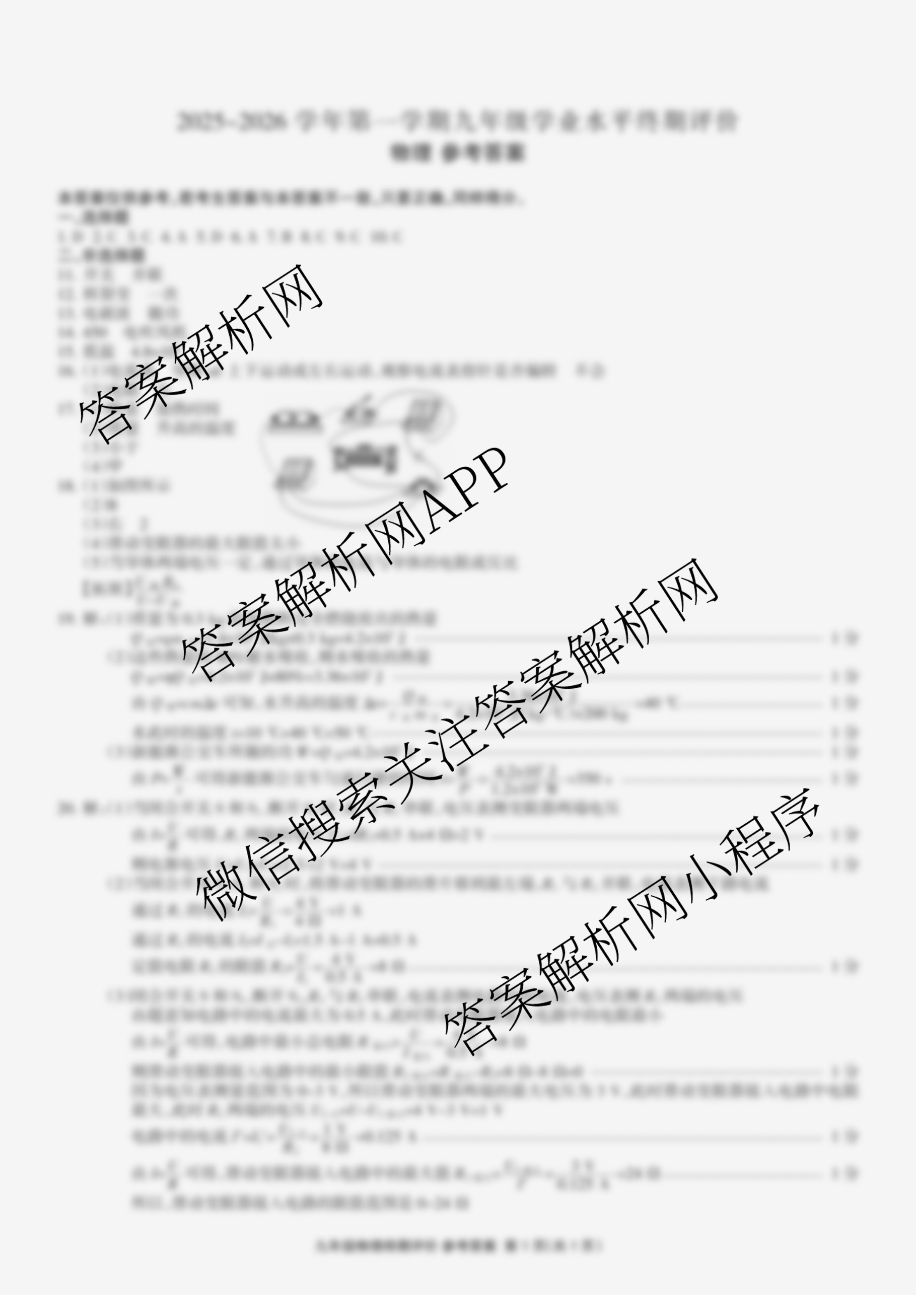 - 2025~2026河北省学年第一学期(九年级)学业水平终期评价物理答案